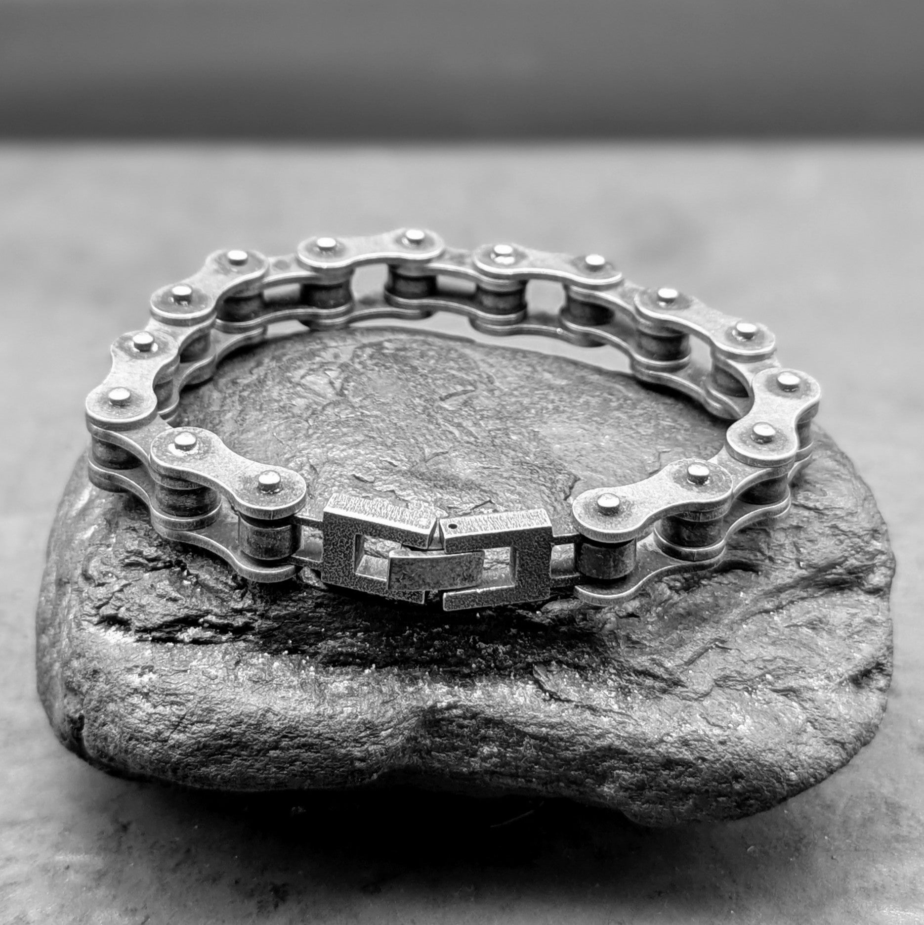 Classic biker link finished with a gun metal patina