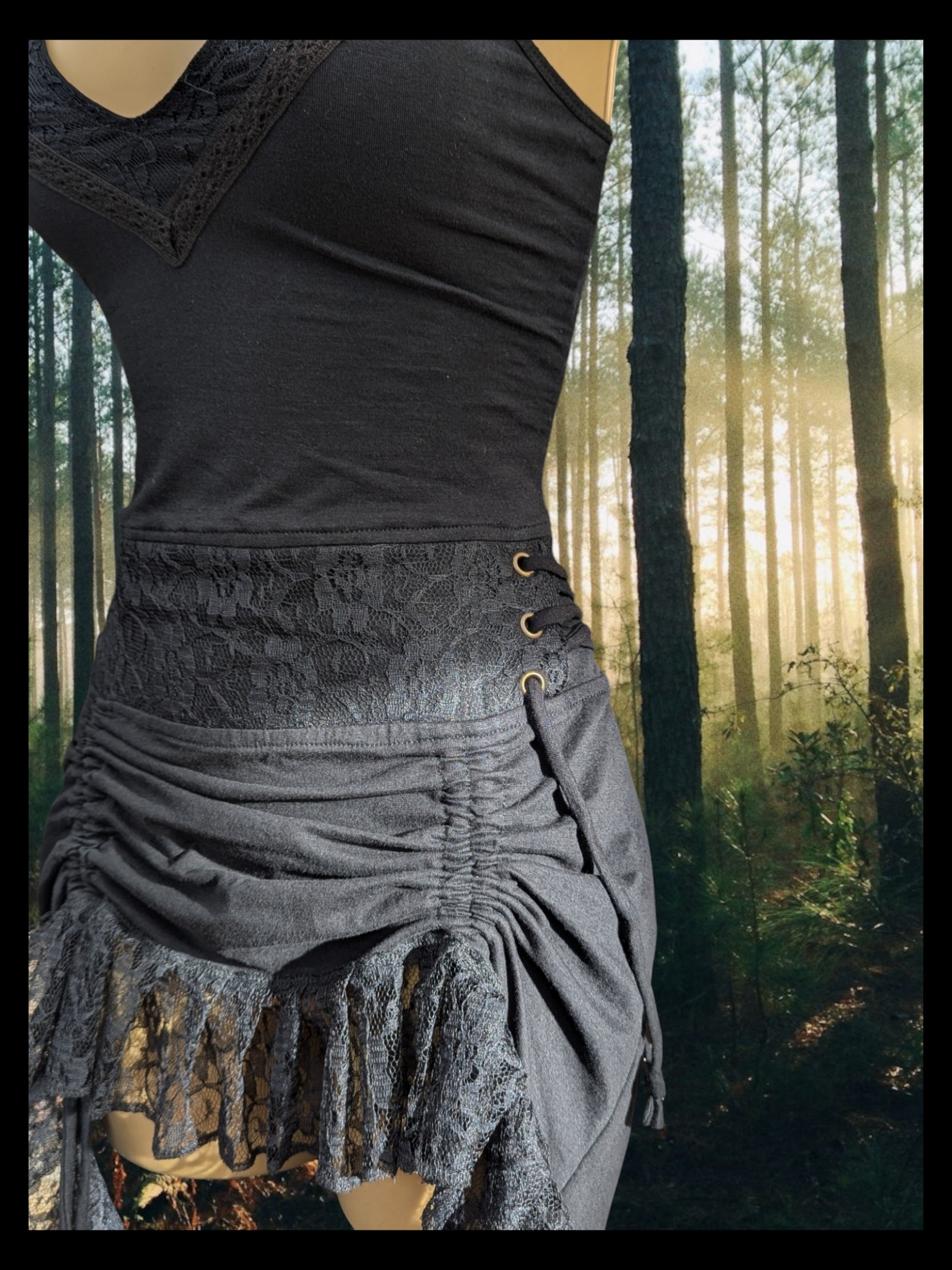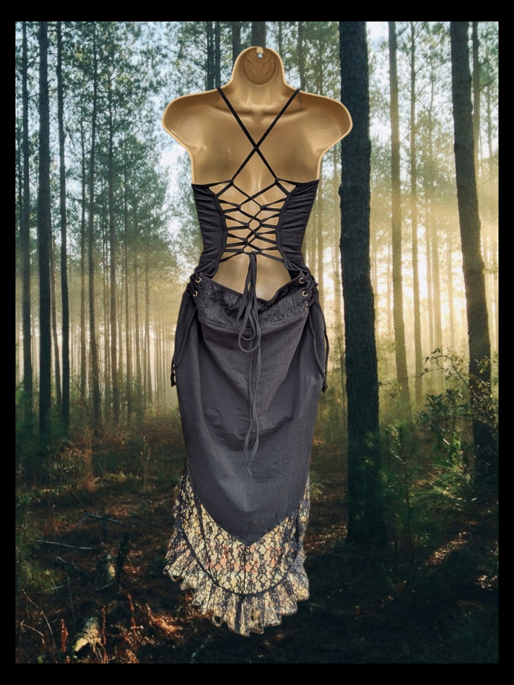 Bring your fabulous fairy dreams to life with this easy-to-wear dress, perfect for all your dreamy occasions. Designed with an adjustable crossover lace-up back and corseting at the waist, it ensures a flattering, comfy fit. The ruching ties at the front let you customise the length to match your style. Ideal for festivals, garden parties, or magical days out!